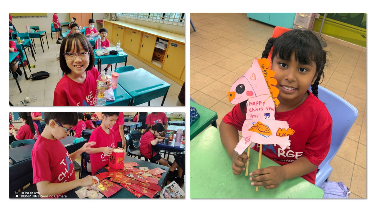 •Primary 6 students hard at work creating their Handmade Ang Bao Basket!(bottom left)