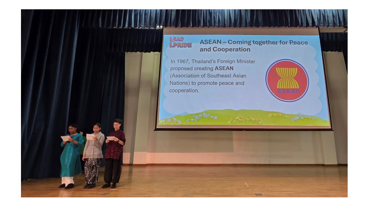 • Learning about ASEAN through student presentation (above)
