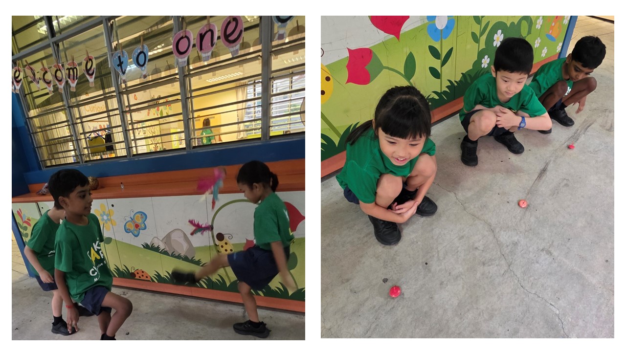 • Students exploring ASEAN cultures through traditional games (above)