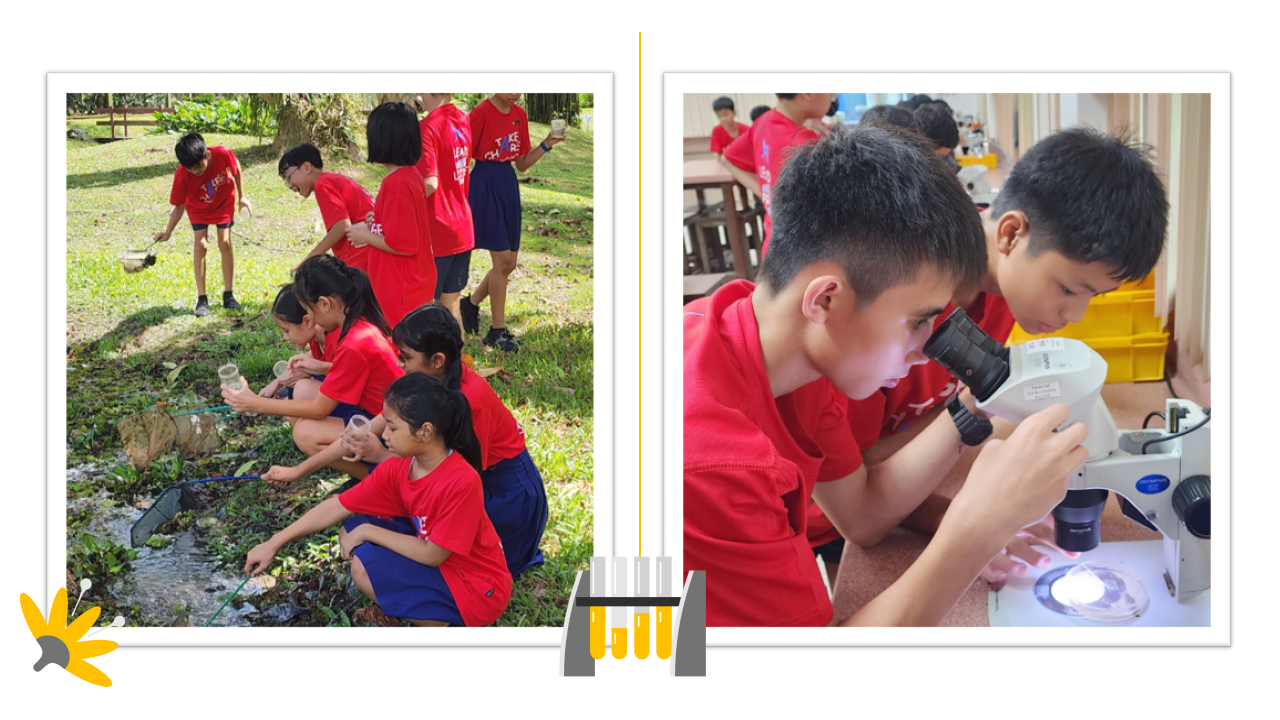 • P6 students collecting and observing pond organisms during a Science Centre enrichment lesson