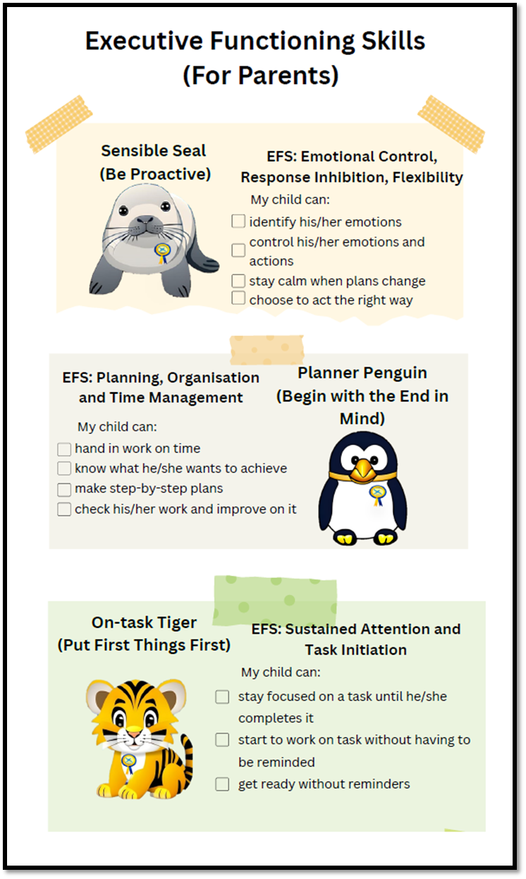 - Executive Functioning Skills (EFS) – helping students manage attention, emotions and actions