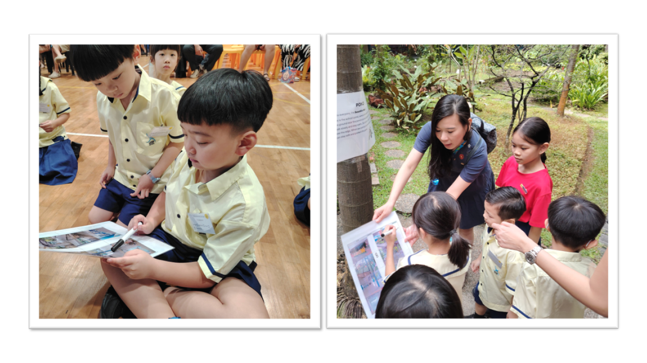 •Parents and PSL guiding the little ones to look for the correct places in school - Orienteering Programme (right)