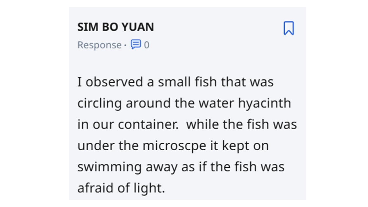 •A student shared his observation of an organism in the SLS reflection. (above)