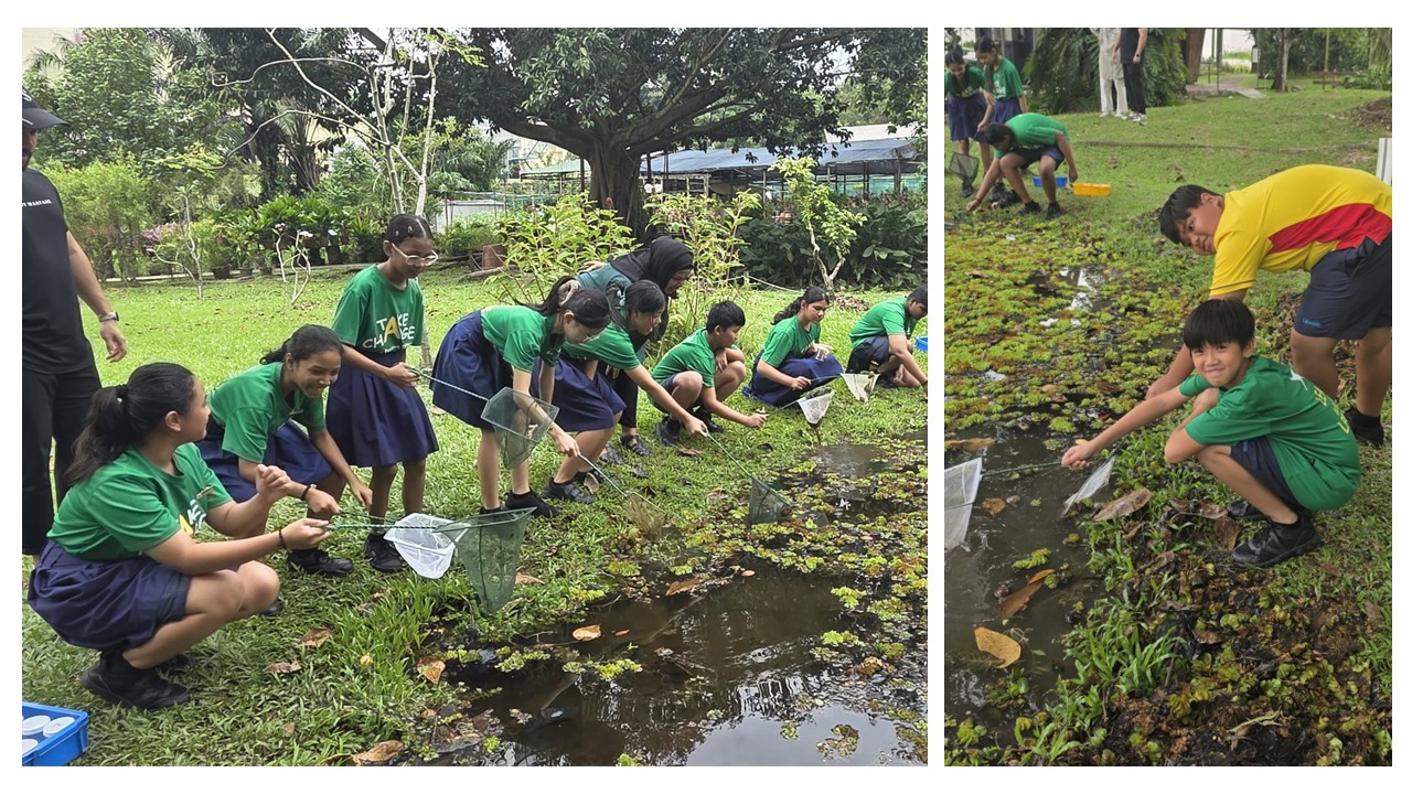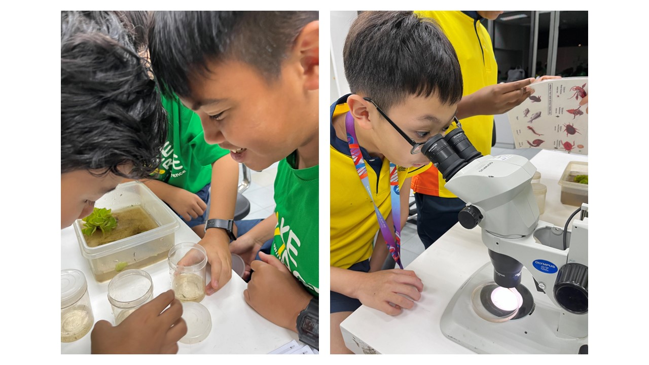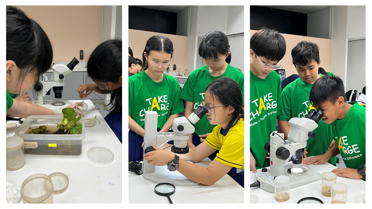 The Ecogarden, a living outdoor laboratory, offers a wide variety of plants and animals for observation. Students collected different organisms from the pond and brought them back to the laboratory, where they examined and identified them under a microscope.